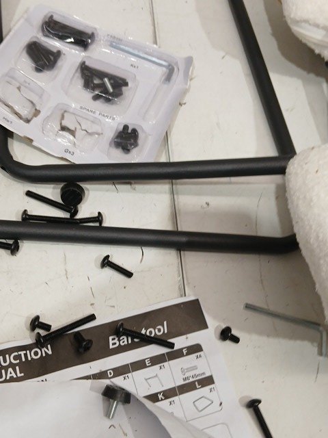 There is some debris on the product and the hardware was loose in the box and we cannot guarantee all pieces are present.
