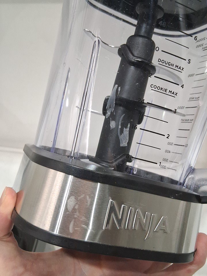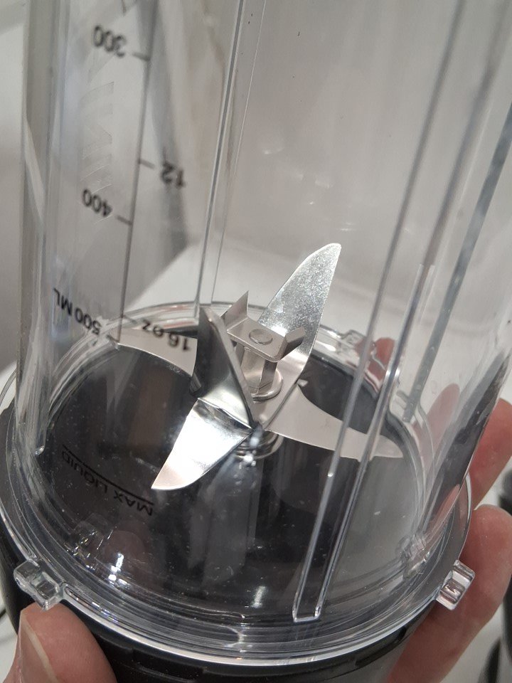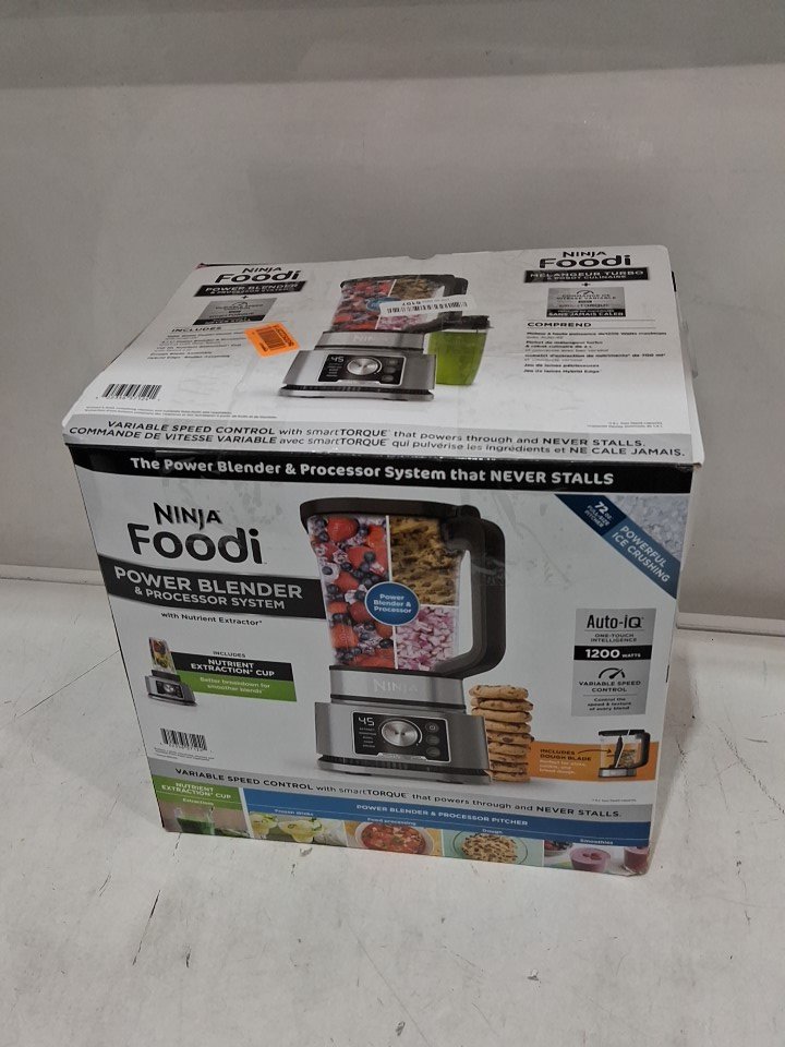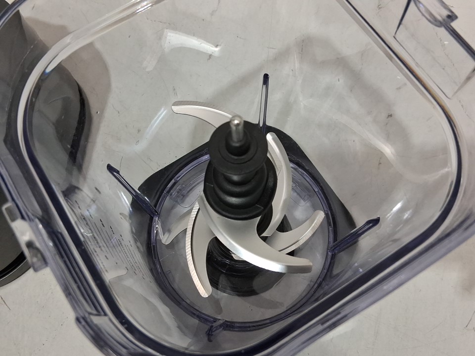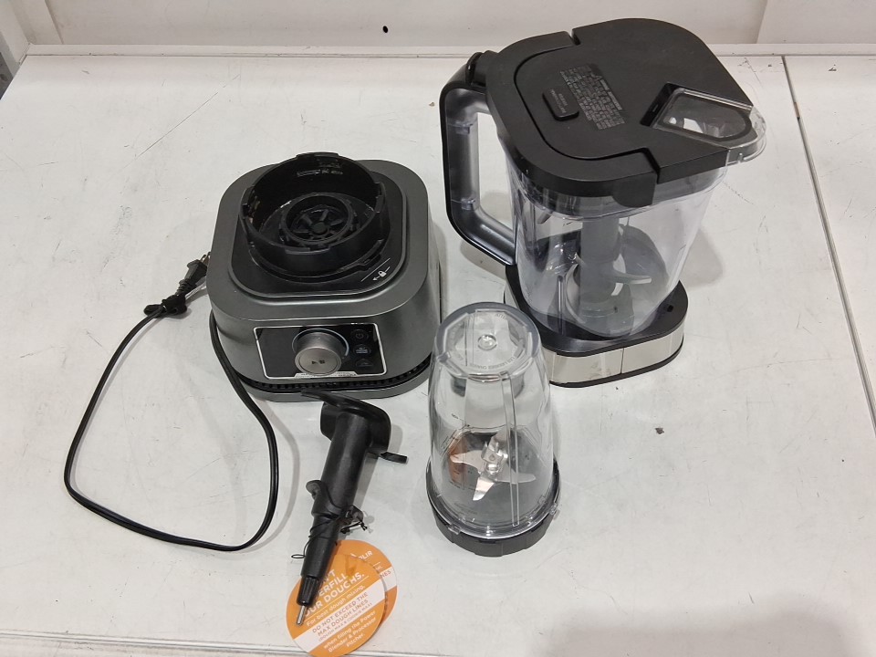 **Tested for power.** Item has some residue markings/debris around the container socket, minor bubbling on part of the exterior from previous gentle use; a couple minor scuffs on the exterior of the large blender container/lid possibly due to shipping as the item's blades and containers appear unused, see photos.