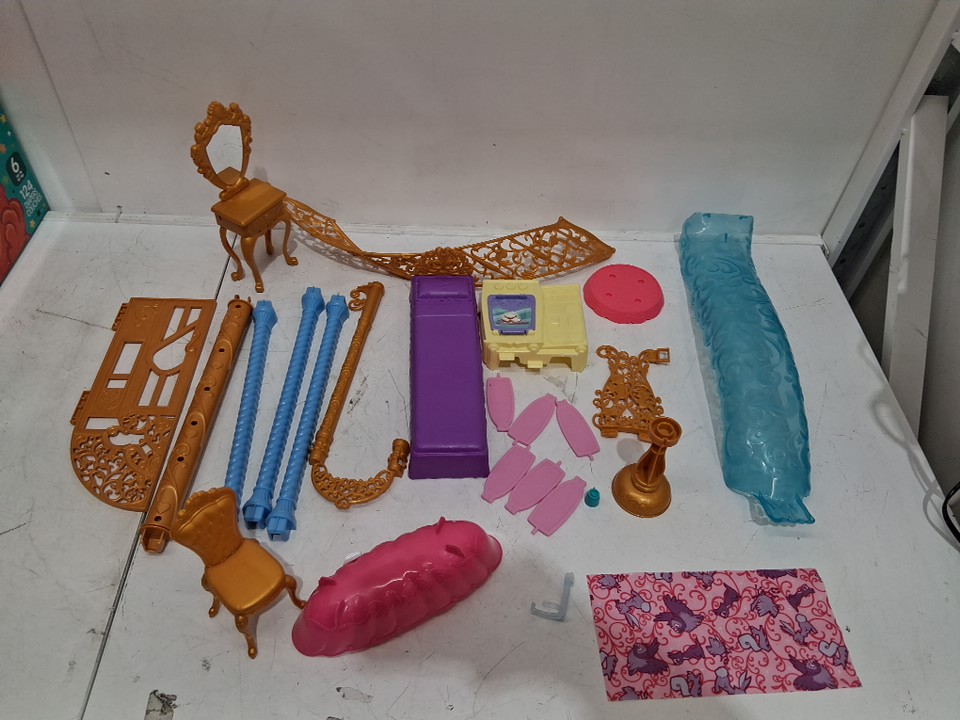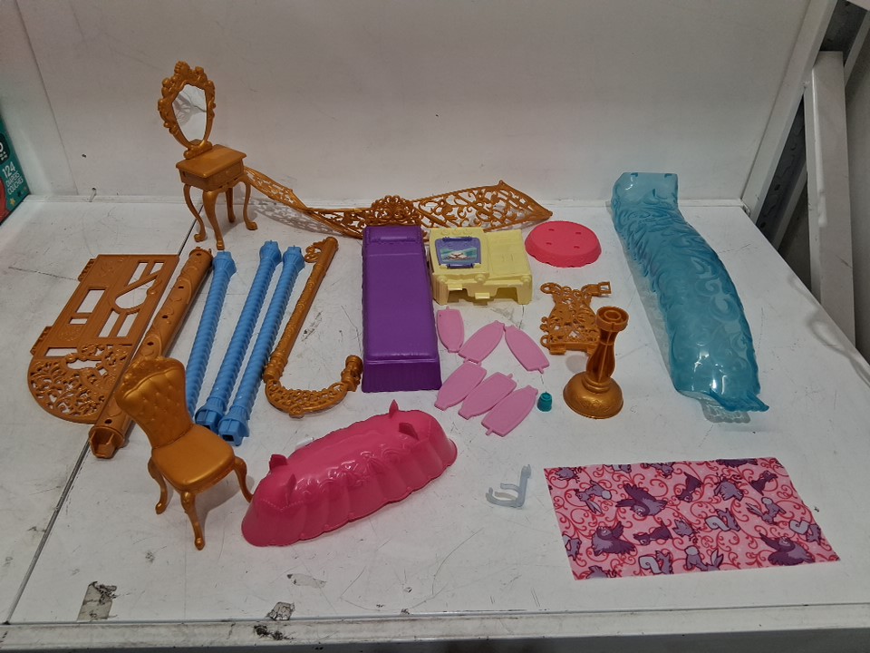 Please be advised that while all the major pieces are there, item seems to be missing small parts/accessories. There is no manual present so we cannot verify. Please see attached pictures for everything that is included. Some pieces are assembled showing previous handling.