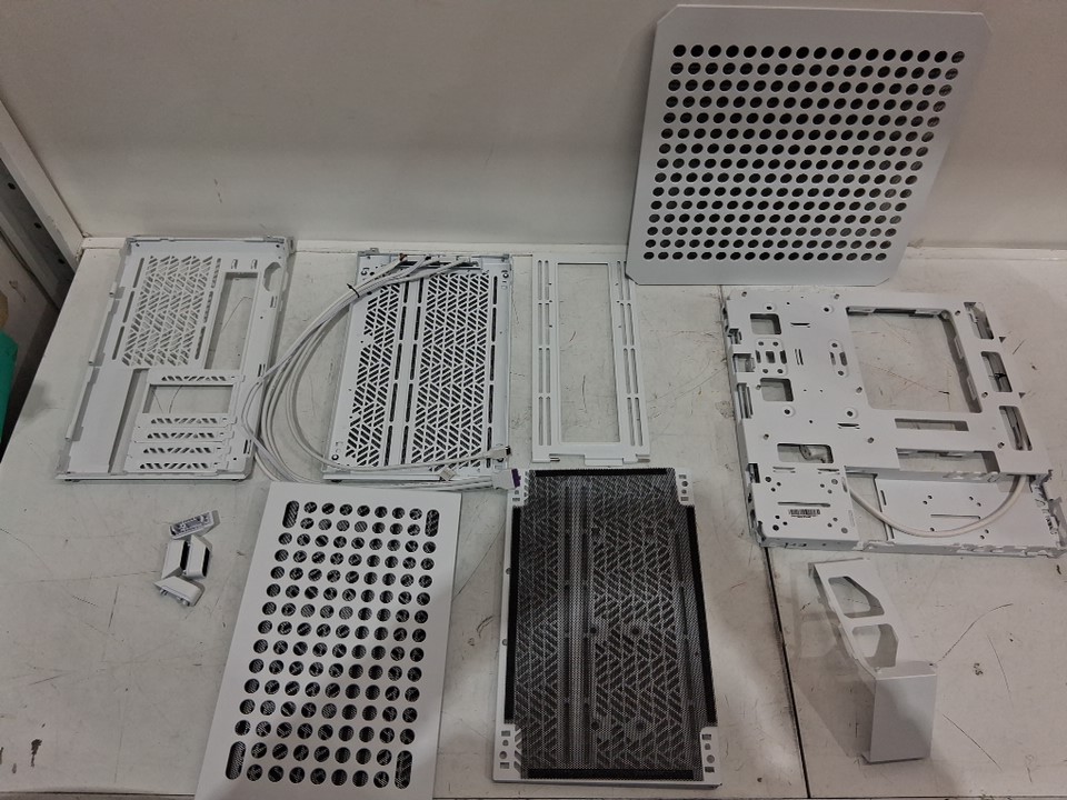 One of the components is bent, should be able to bend back. Missing headphone holder, back handle, fan, and assembly screws. should be able to buy replacement hardware at hardware store or from the manufacture. See photos
