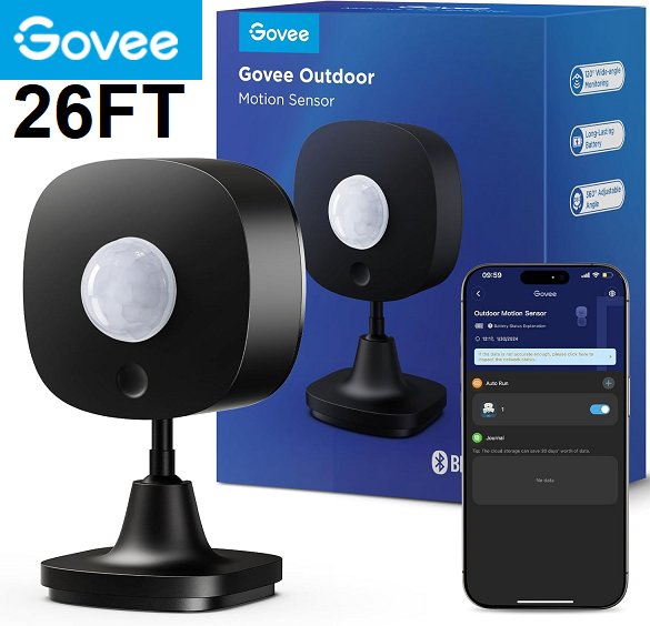 Govee Outdoor Wireless Battery Powered Motion Sensor for govee wifi lights - max range 26ft - ip65 waterproof - black (model: h5129)