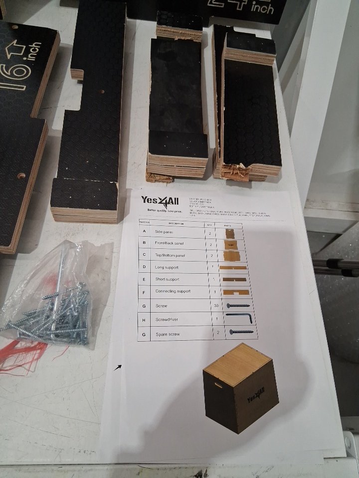 it has two broken slabs and sides looks scratched and shaved. hardware might be missing because pack was opened.