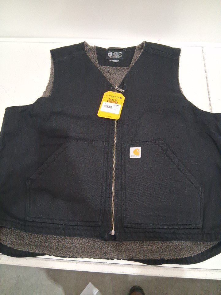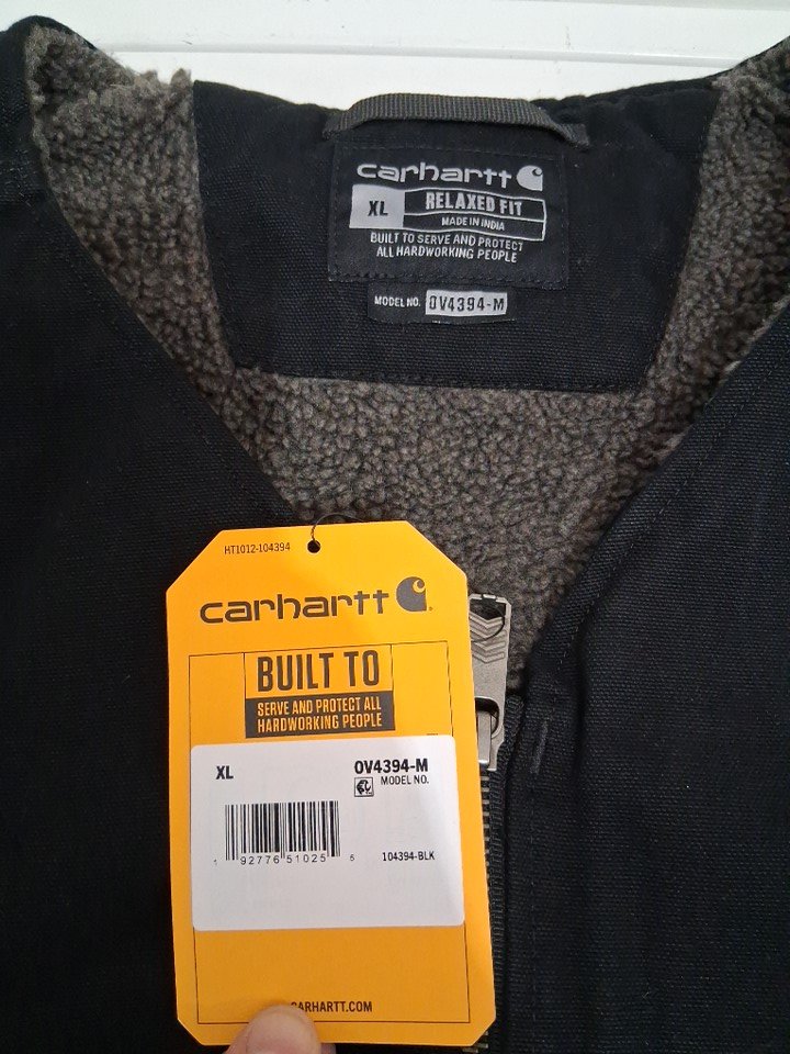 men's carhartt relaxed fit washed duck sherpa-lined vest - extra large - black (model: ov4394-m)