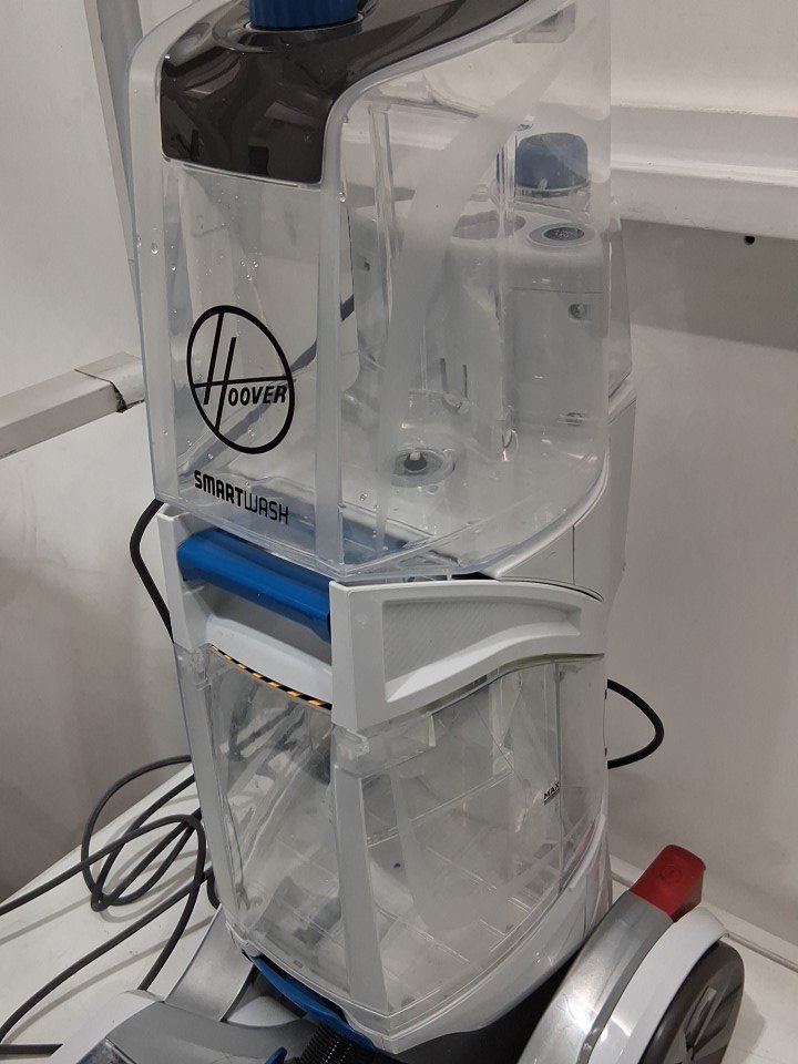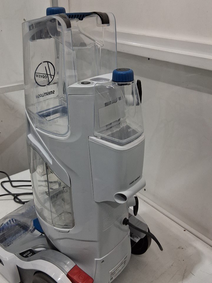 **Tested for power and suction.** Item has some dust/debris around the main roller brush and on the cover piece, residual water and a few minor markings in the reservoirs, light wear on the brush attachment, does not include any cleaning solution from previous gentle use, see photos.