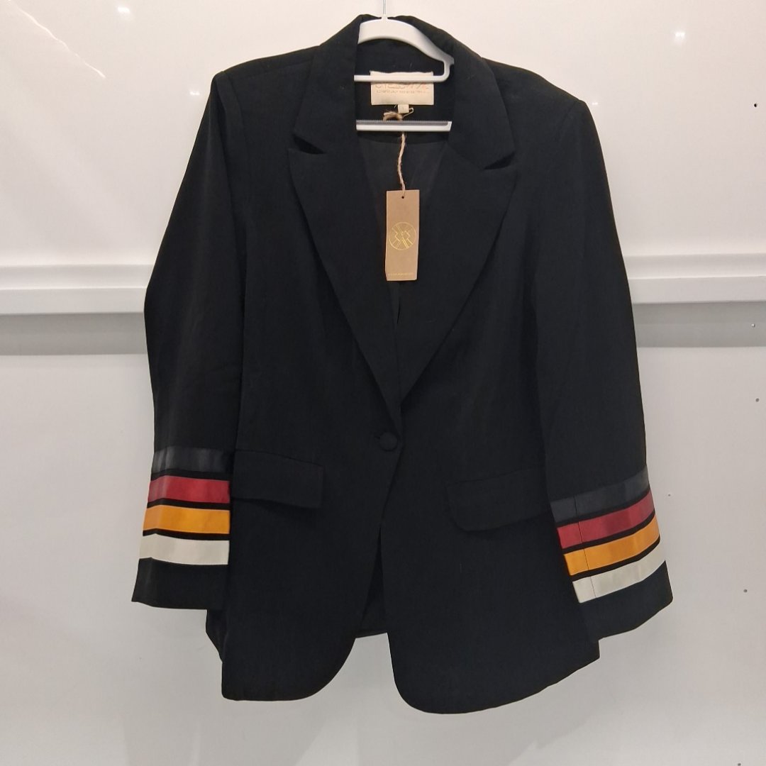 women's B.YELLOWTAIL Power Suit Ribbon Blazer - LARGE - BLACK/RED/YELLOW/WHITE (STYLE: 41414899)