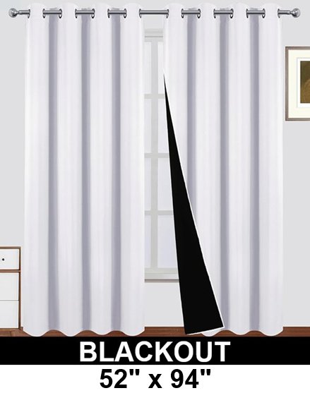(2 PANEL) LEMOMO Blackout GROMMET TOP Curtains - 52" x 94" - WHITE/BLACK