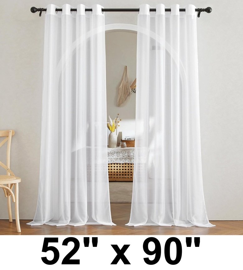 (2 panel set) nicetown grommet top sheer curtains - 52" x 90" - white