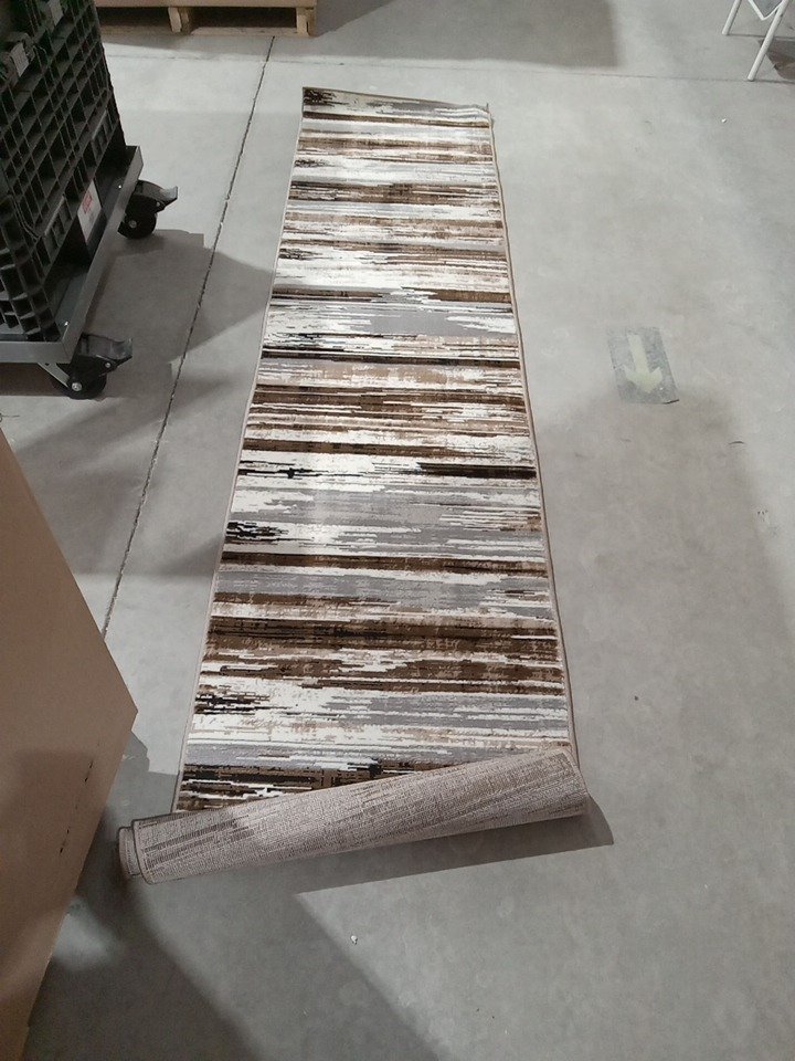 KOSHANI RUGS Vegas Collection Striped runner Rug - 2FT 2" x 10ft - BEIGE (Design: 7978)