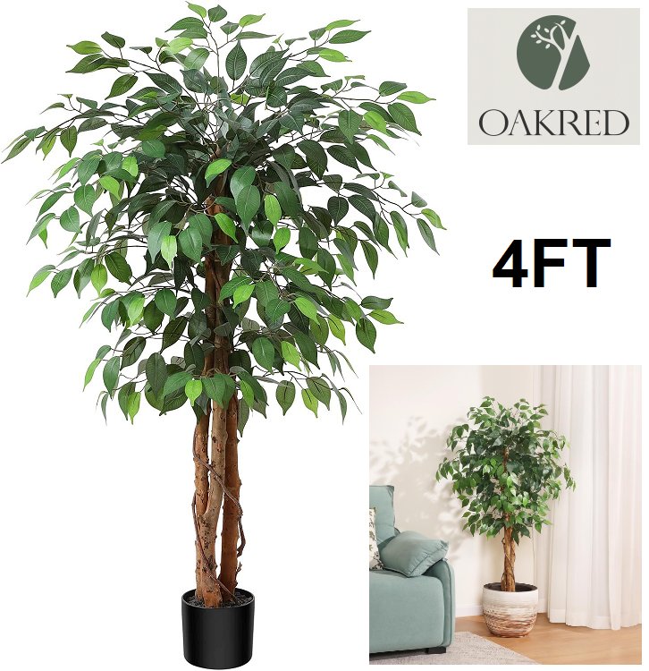 oakred artificial ficus tree - 4ft - green/black base