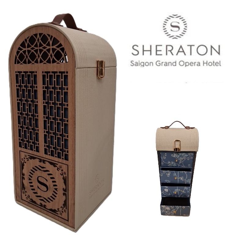 Sheraton Saigon Grand Opera Hotel 4-Drawer Jewelry Box - 14" x 7" - Brown