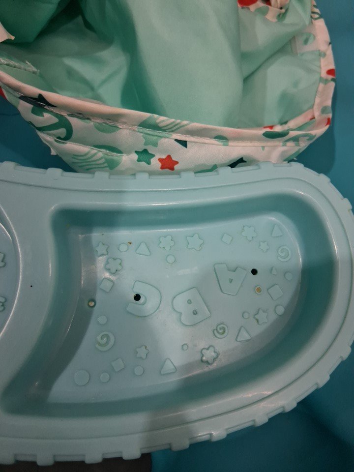 Most of the pieces have scuffs/residue from use.