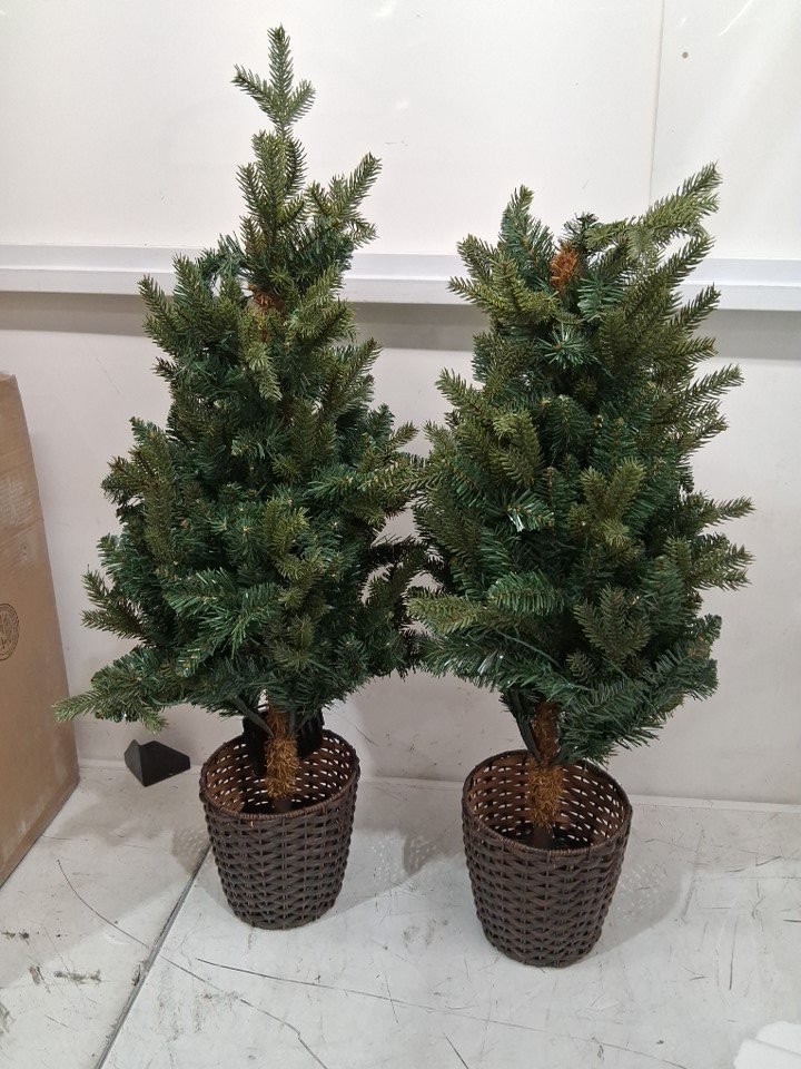 2PC WONDERSHOP PRE LIT POTTED BALSAM FIR LED TREE - GREEN/BROWN - 3FT