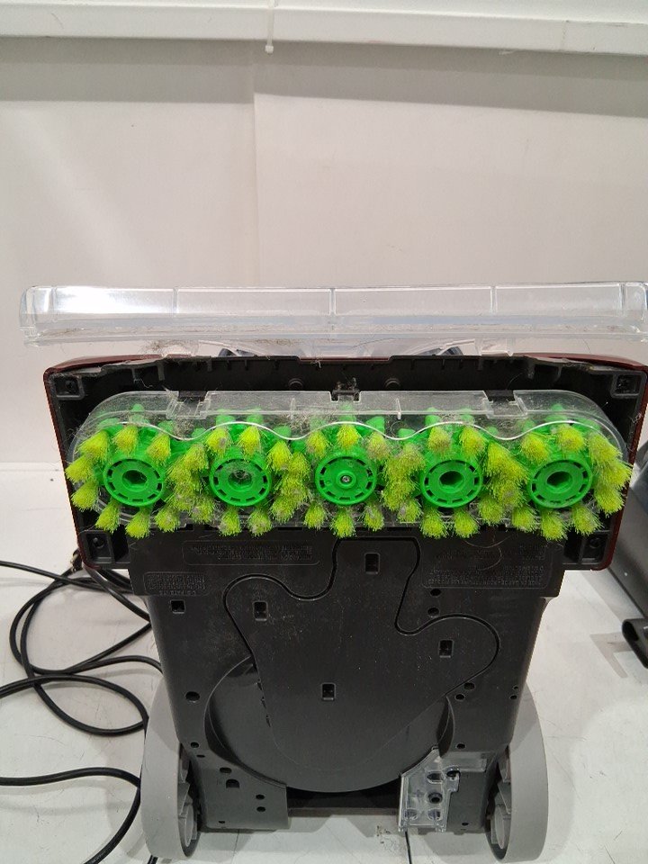 Item shows signs of previous use such as moisture inside container, dirt/dust on surface, and hair in bristles of machine. Item tested for power.