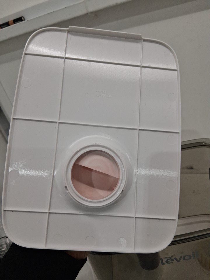 item has some water residue inside from previous use as well as a pinkish coloring inside please refer to pictures tested fort power