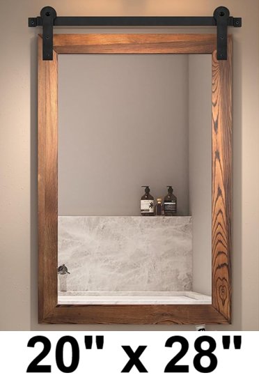 cogood farmhouse rustic wood framed barn door wall mirror - 20" x 28" - brown (model: co-w03)