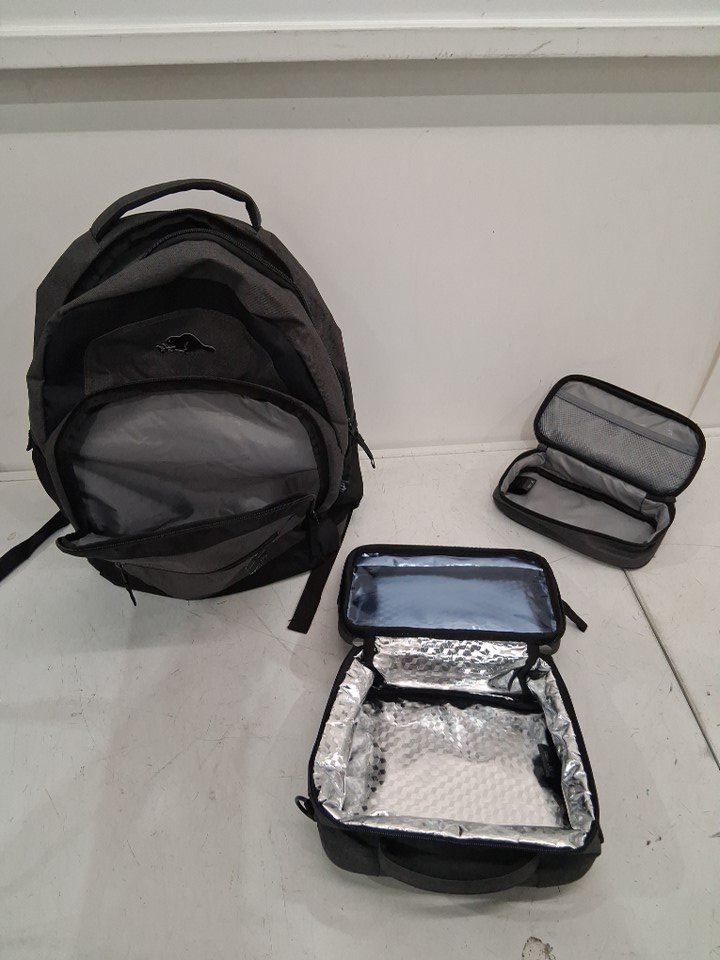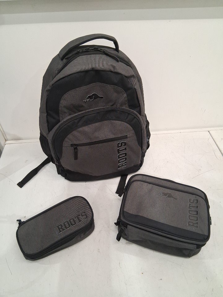 3PC Roots Athletic 3-in-1 Matching Water-Resistant Backpack and Lunch Bag Set with Bonus Pencil Case - 34 Litres - Grey/Black (Style: RTS5922-221)