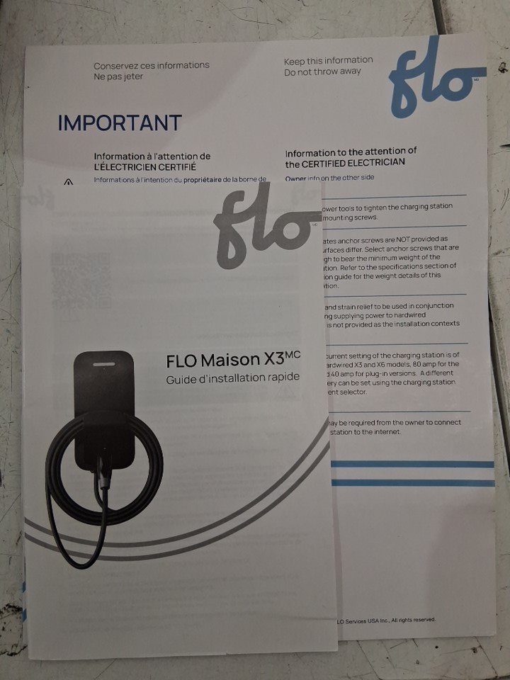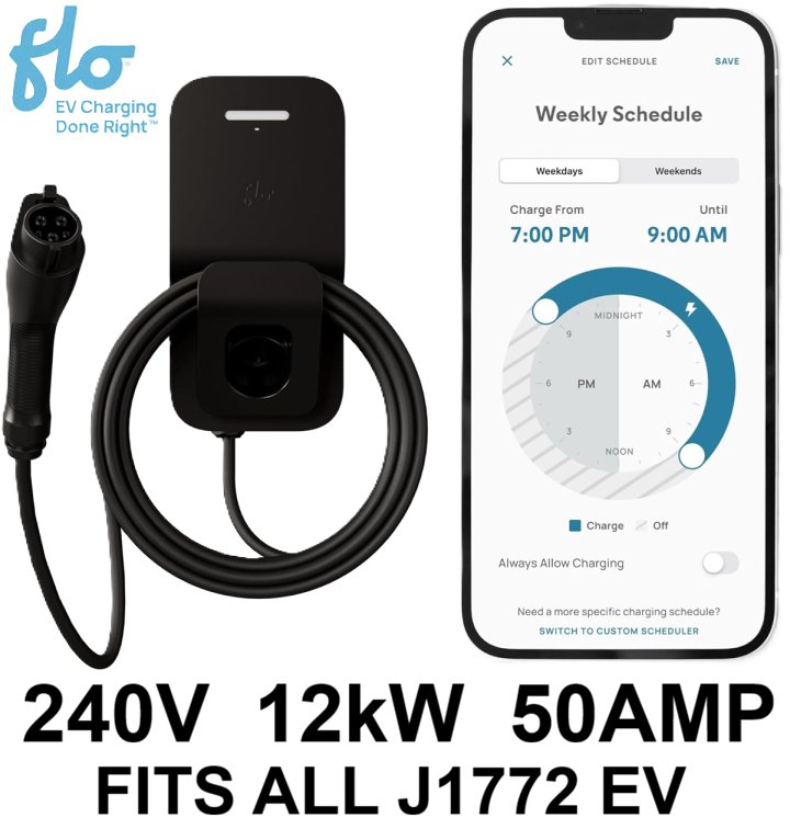 FLO Home X3 Level 2 Electric Vehicle Charging Station - Fits All J1772 Connection EV's - 240V 12 kW 50 amp - 25 FT Cable - Black (Model: HOX3F2A1A1)