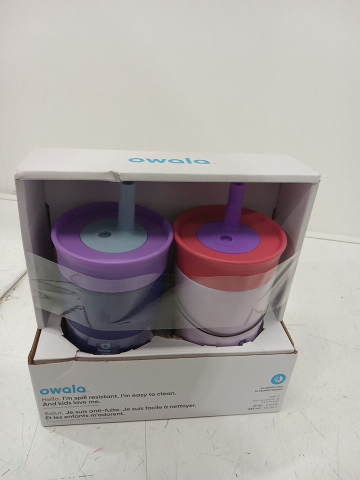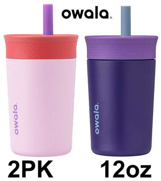 2pk Owala insulated tumbler cups with leak proof straws - 12oz - pink/purple (Model: 1907841)