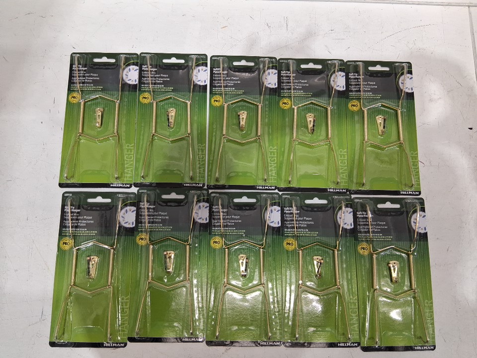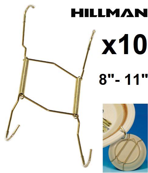 10 Hillman Medium Plate Picture wall Hangers with soft Tips - for 8" to 11" plates - brass (model: 122052)