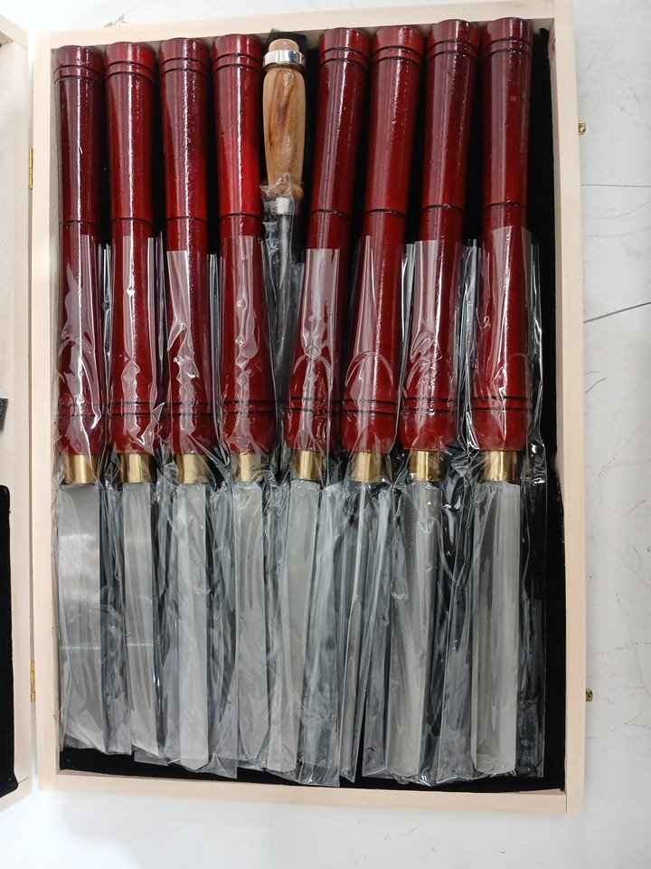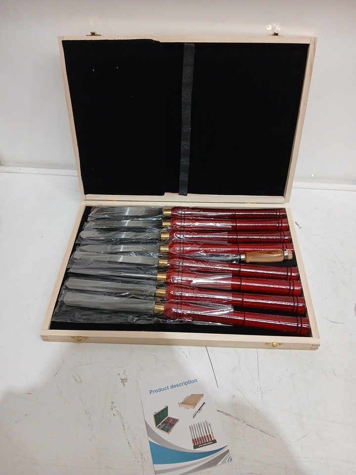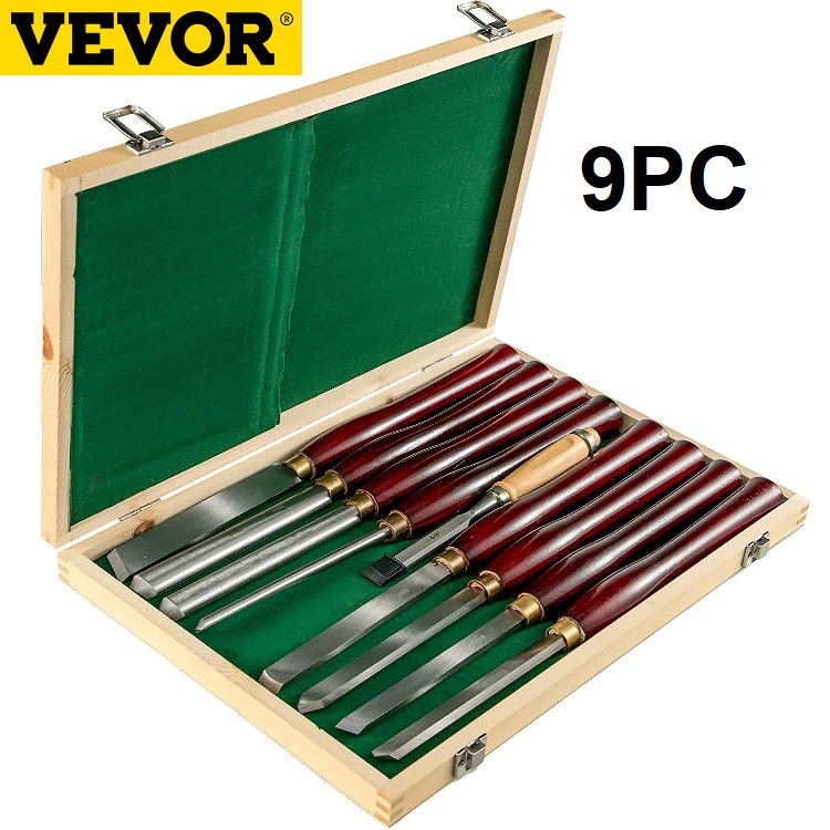 WOOD TURNING LATHE CHISEL SET 9 PC HSS STEEL BLADES - WOODEN CASE FOR STORAGE