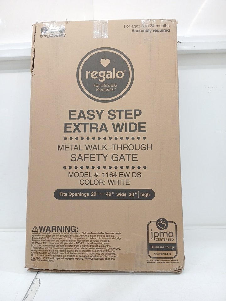REGALO EASY STEP EXTRA WIDE METAL SAFETY GATE - 30" x 29"- 49" - WHITE - (MODEL: 1164EwDS)