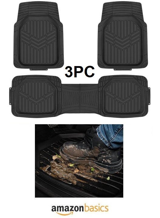 3PC Amazon Basics Deep Dish Universal Heavy Duty PVC Faux Rubber Floor Mats - black