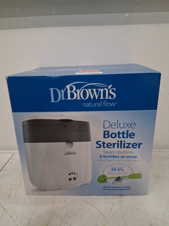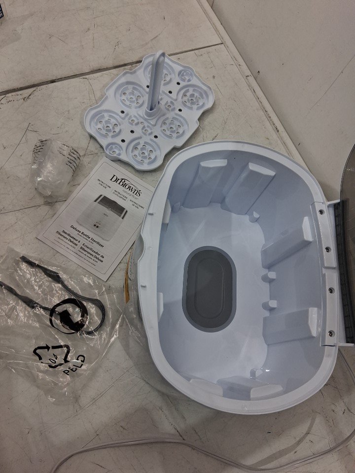DR. BROWN'S DELUXE BOTTLE STERILIZER - STERILIZE 6 BOTTLES PER CYCLE - WHITE/GREY (MODEL:AC045)