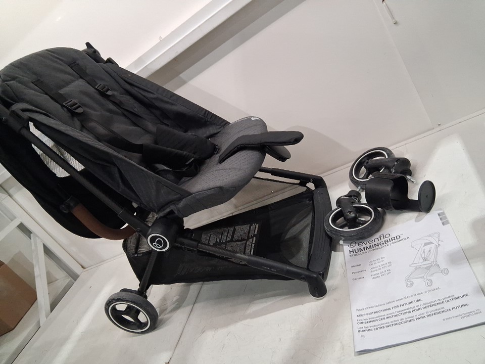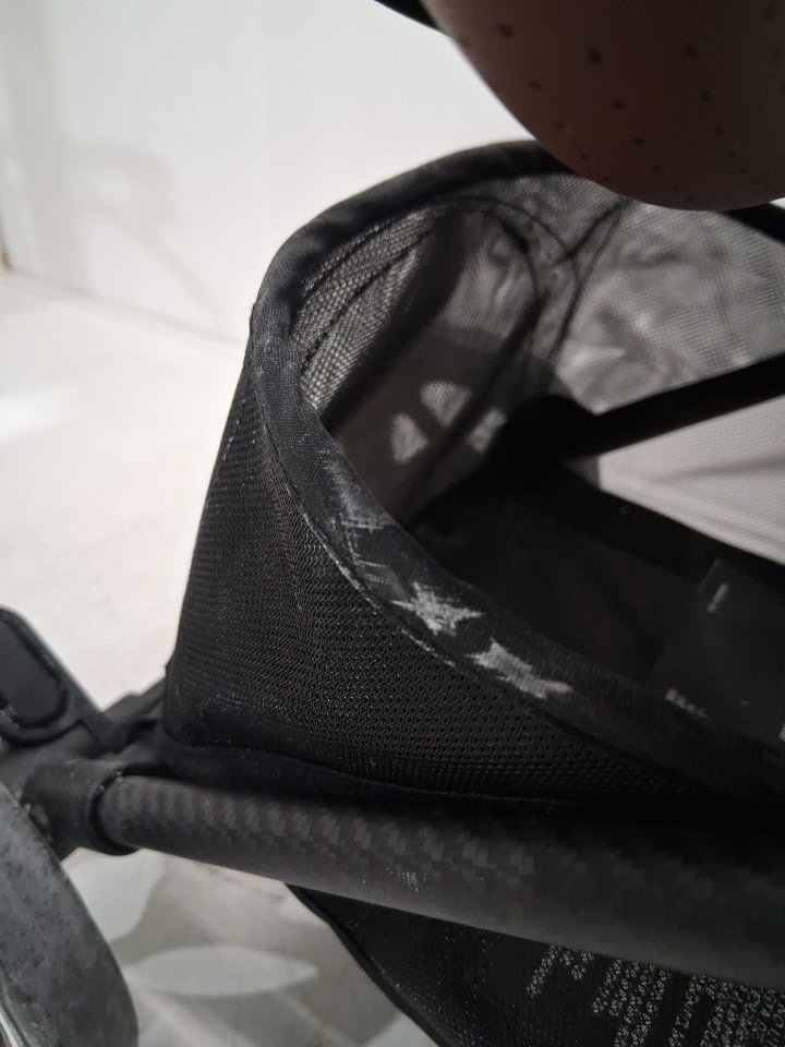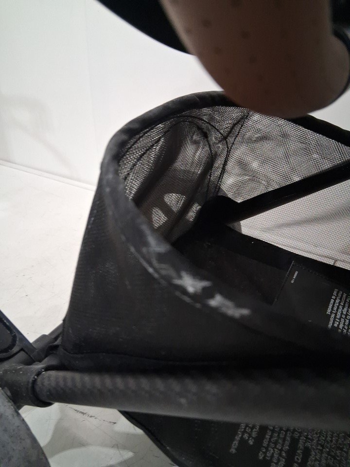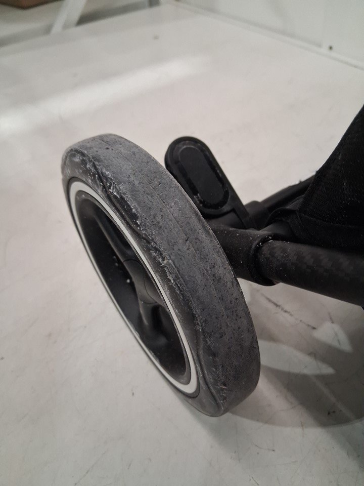 There are some dirt marks and hair on all the wheels, dirt in outside the basket and on the side of the seat there a stain, see photos.