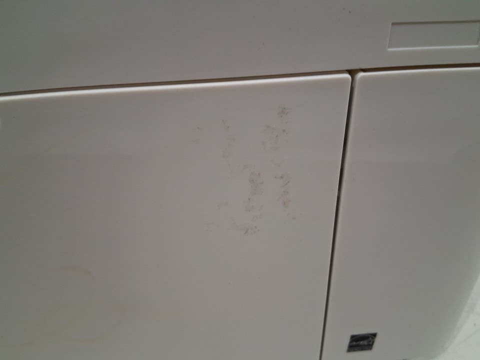 there is some dust from shipping and a small red scuff on the back item is missing power cord however it can easily be replaced (photos to show)