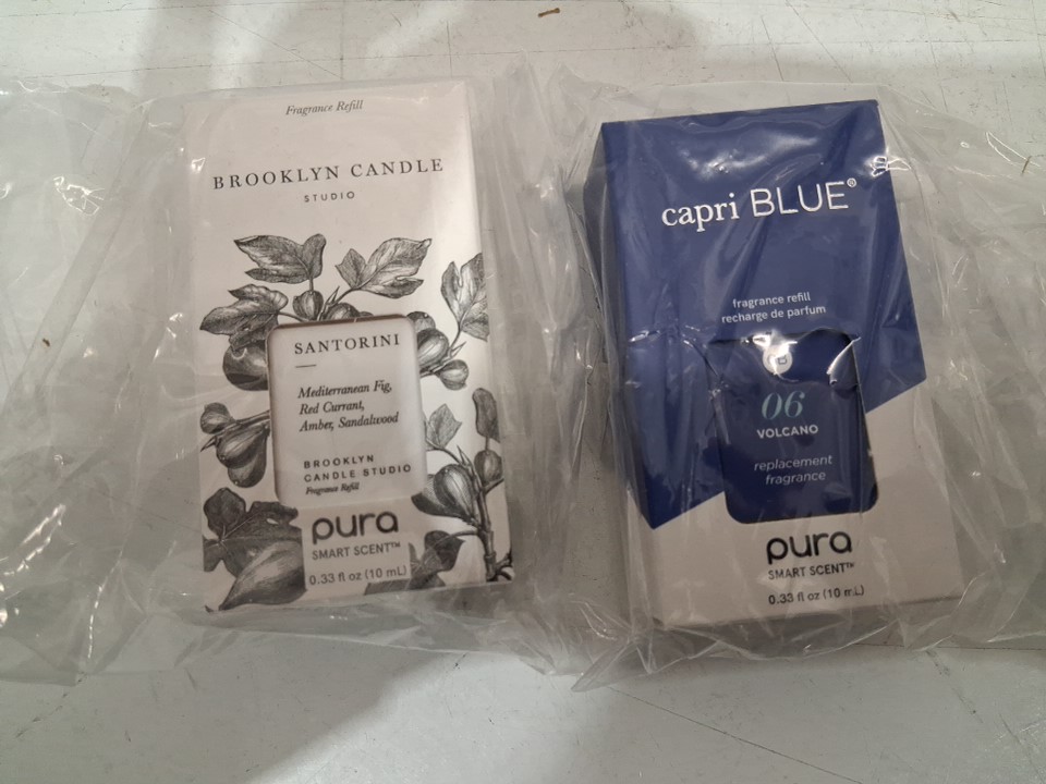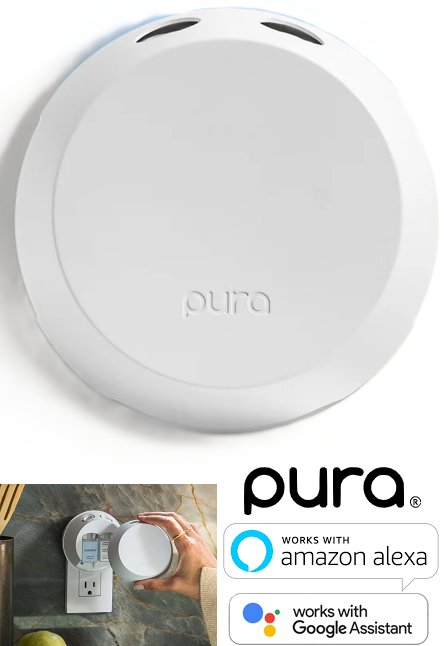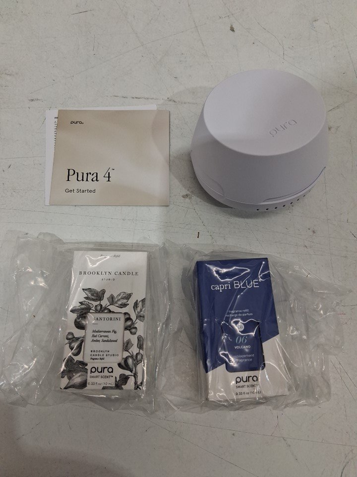 Pura 4 Smart home medium room fragrance diffuser - amazon alexa & google assistant - comes with 2 scents: capri blue 06 volcano (10ml) & brooklyn candle santorini (10ml) - white (model: 810-00016)