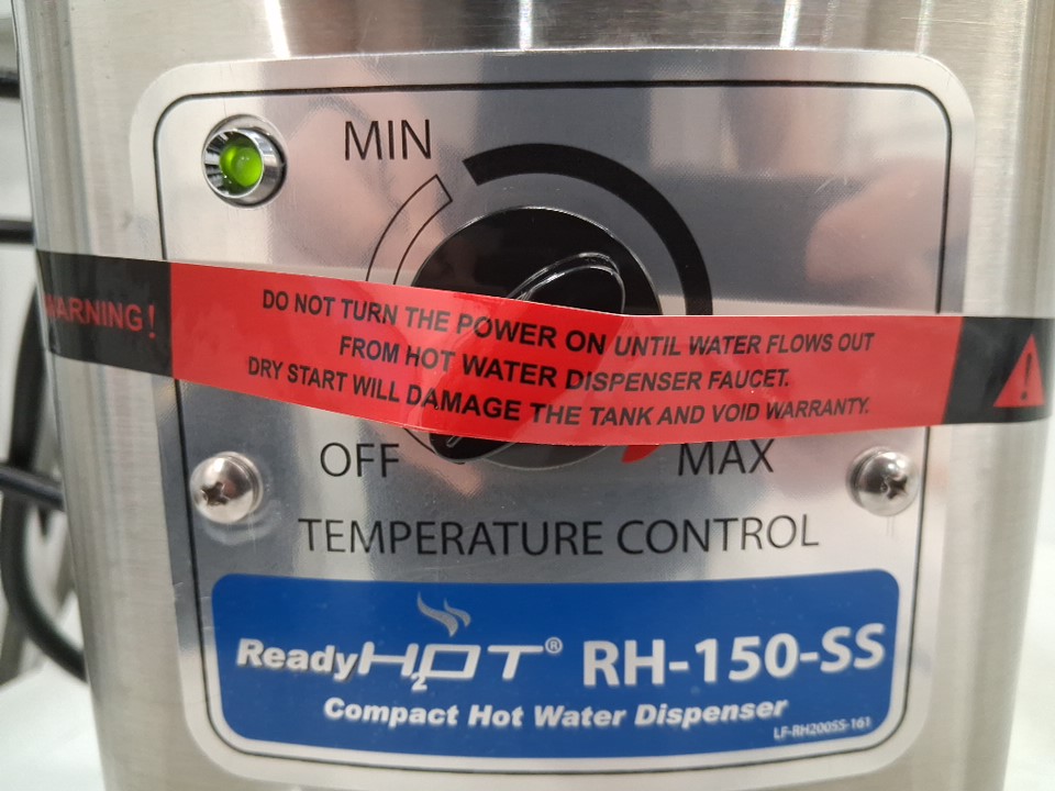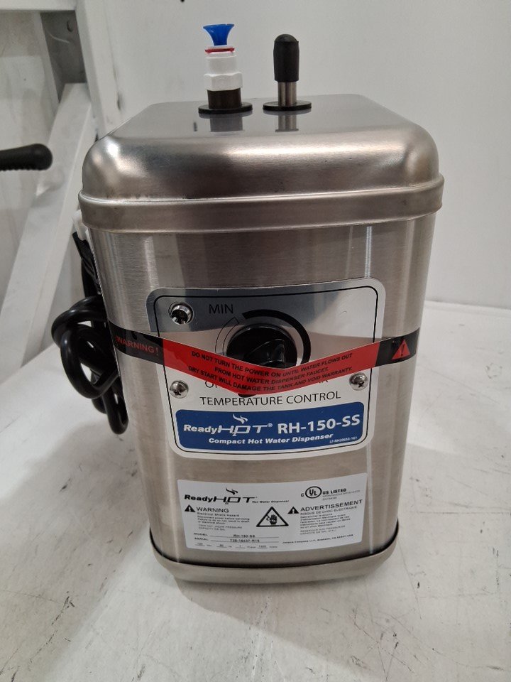 ready hot reverse osmosis compatible compact water dispenser with manual temperature control - includes hot lever faucet - brushed nickel (model: rh-150-ss / 41-rh-150-f560-bn)