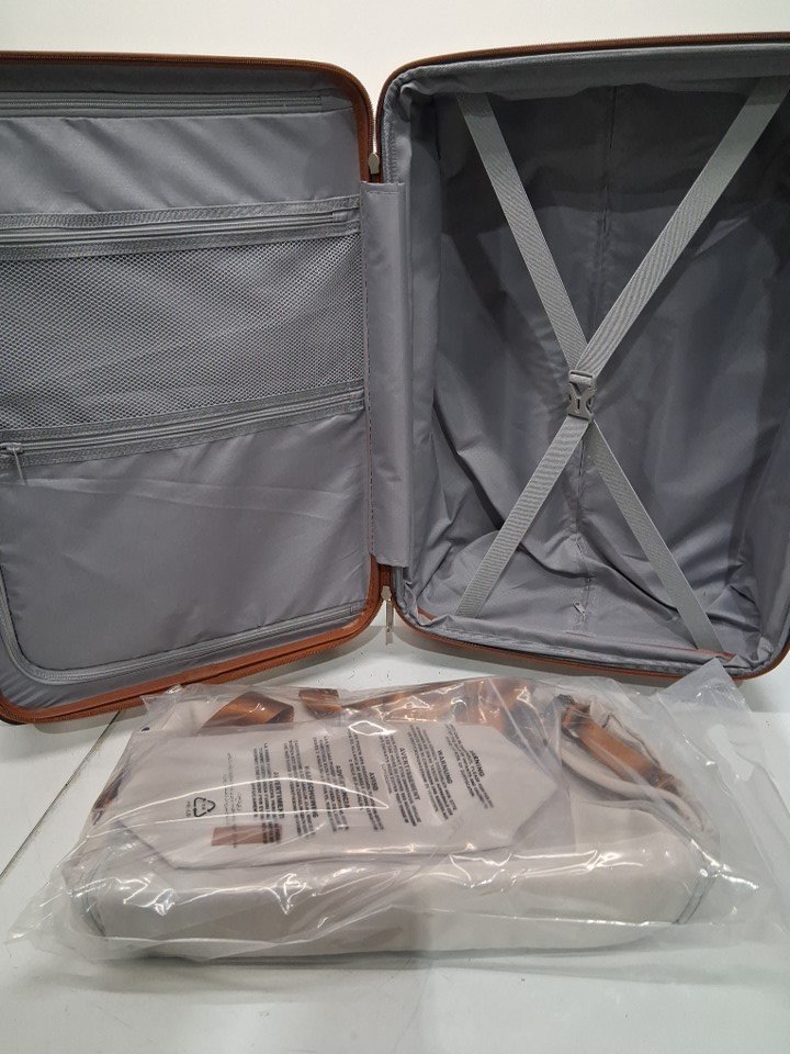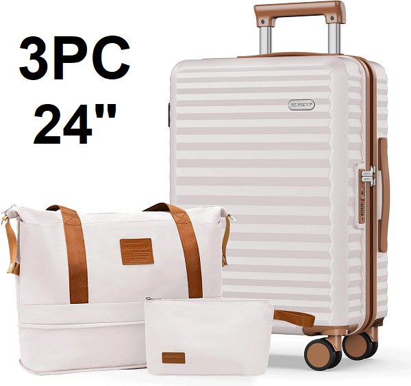 3PC SHOWKOO Luggage PC+ABS Durable Expandable Hardside Suitcase with Spinner Wheels - 24" - Beige white/browns (model: SK-243)