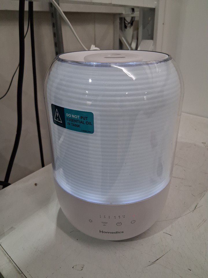 There is water on all of the pieces due to being previously used. The humidifier was tested for basic power.