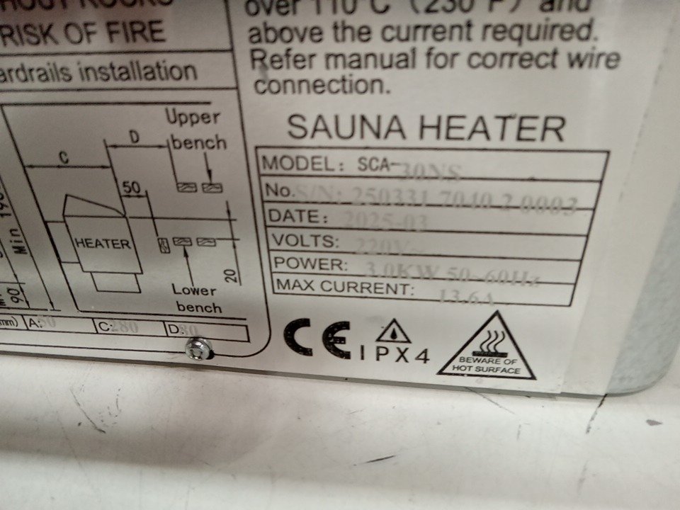 sauna heater with adjustable temp - 7.1" x 16.1" - 3kw - 70-141cu.ft heating area - black (model: sca-30ns)