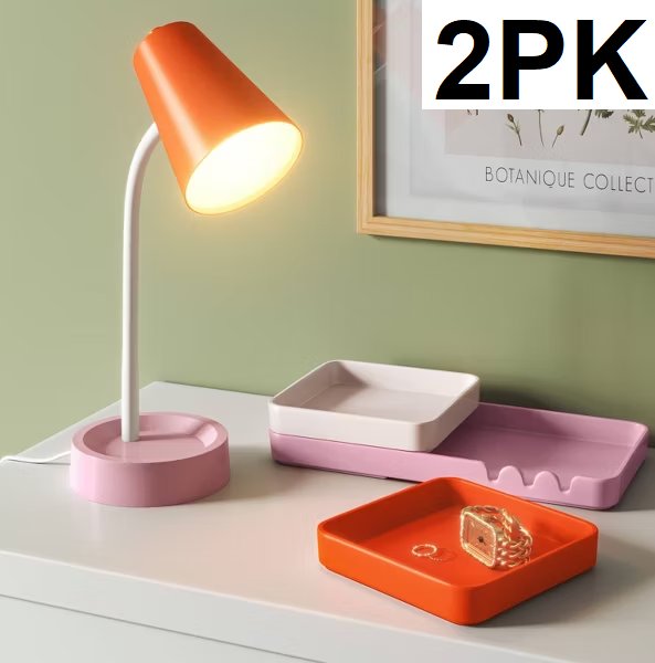 2PK ROOM ESSENTIALS NOVELTY TABLE TASK LAMPS WITH CHARGING PORTS - ORANGE/PINK