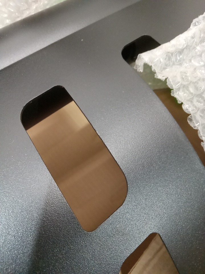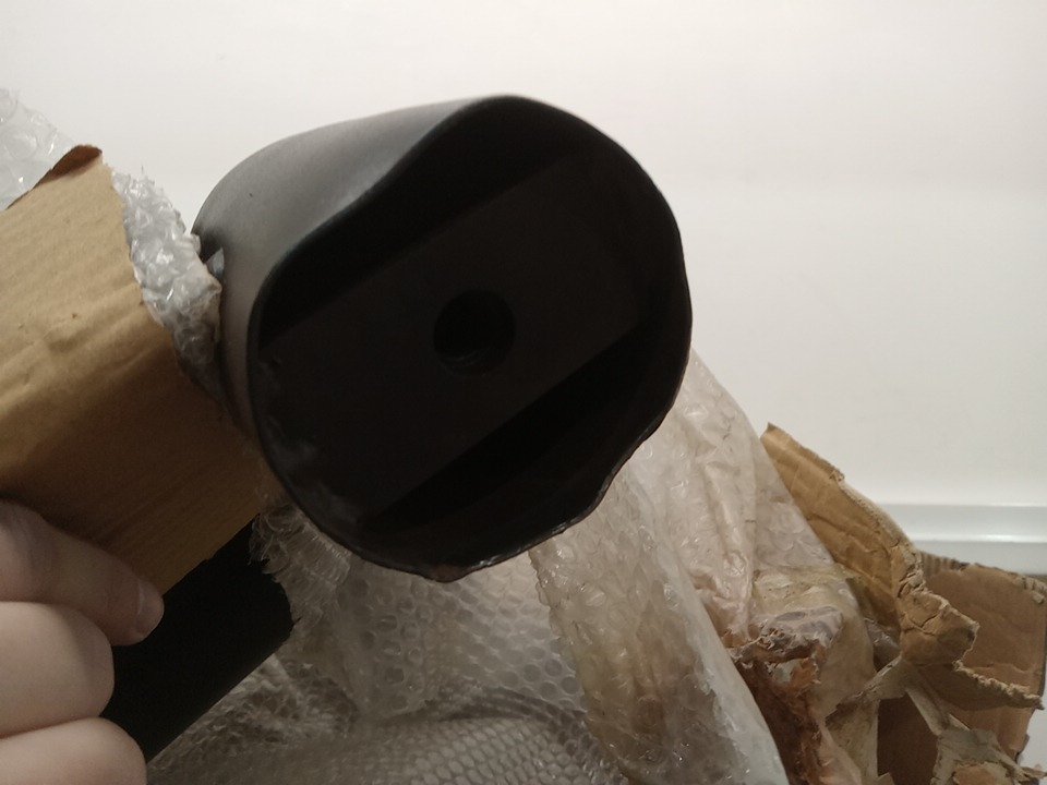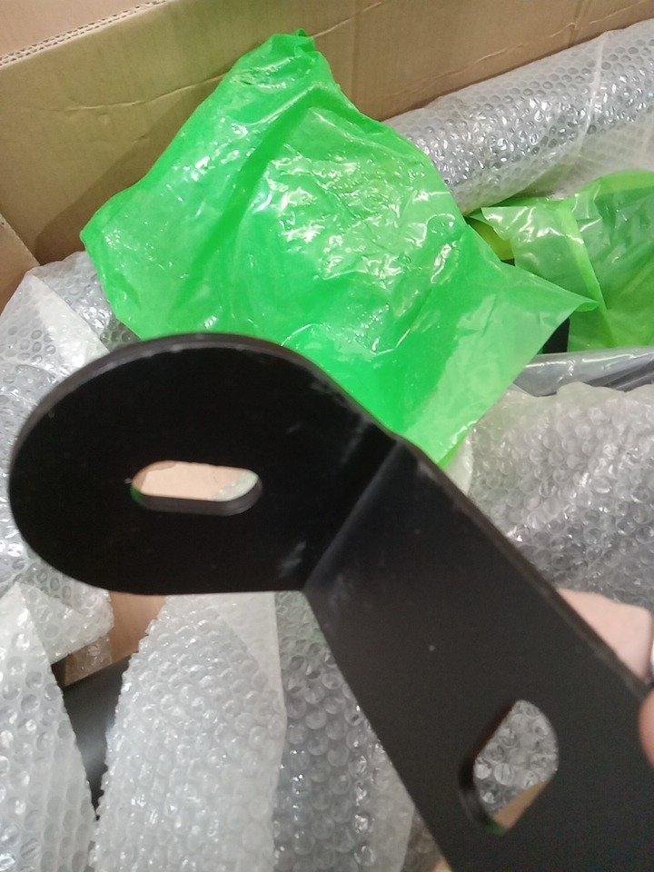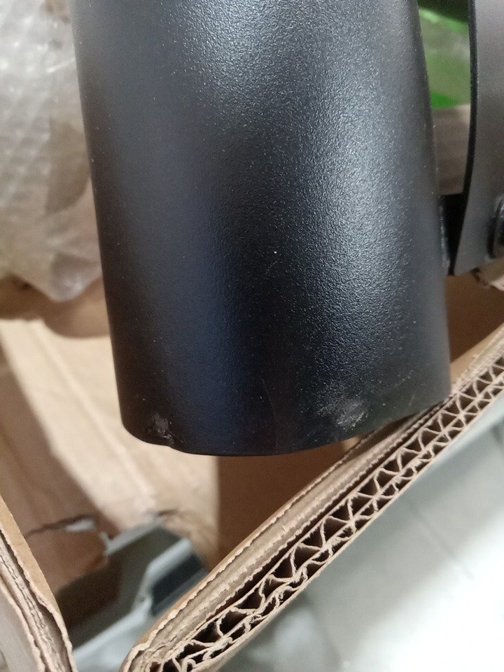 Dents/scratches on the ends of the bar and some scuff son some of the hardware, likely from shipping/handling as box is ripped in several spots.