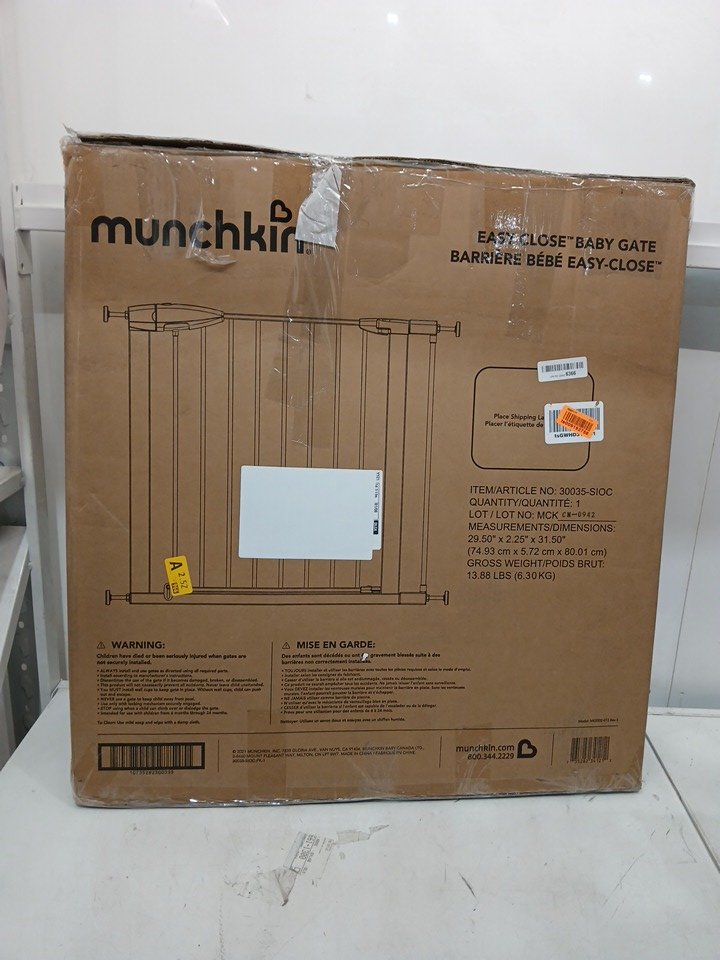 MUNCHKIN EASY CLOSE METAL BABY GATE - 29.5" - 35" x 29.5" - WHITE (mk0002-012)