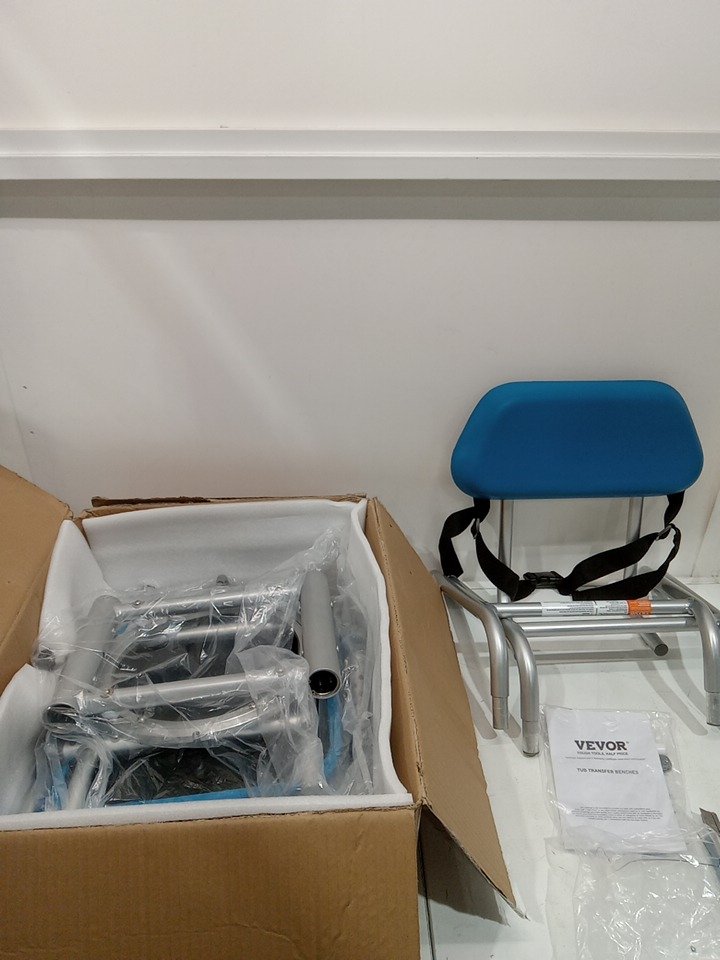 Sliding Tub Transfer Bench with Swivel Seat Shower Chair - 330LBS - Silver/Blue - (Model: FBL650328)