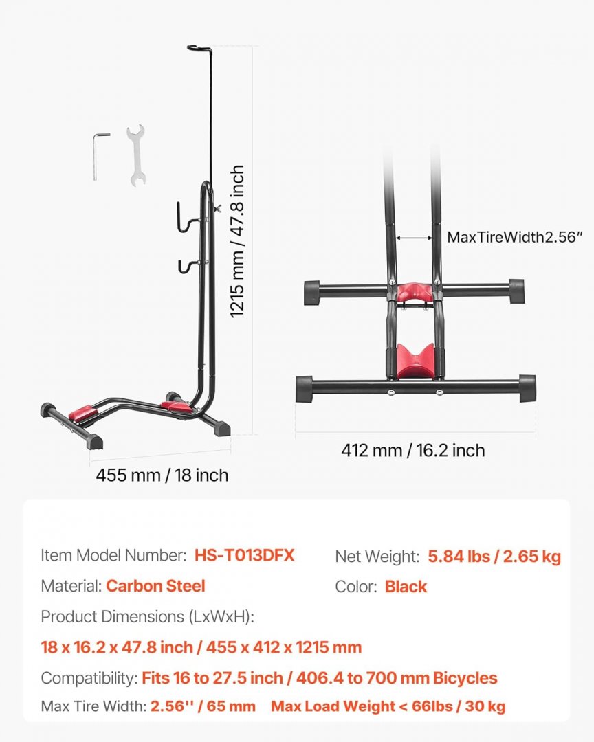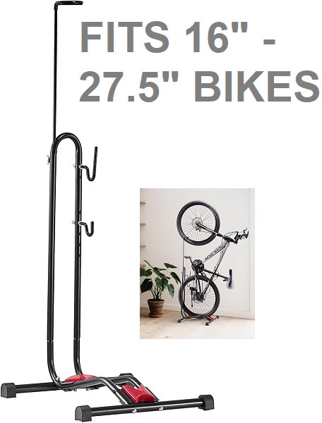 Upright Bike Floor Stand RACK - FITS 16" - 27.5" Mountain & Road Bikes - BLACK (MODEL: HS-T013DFX)