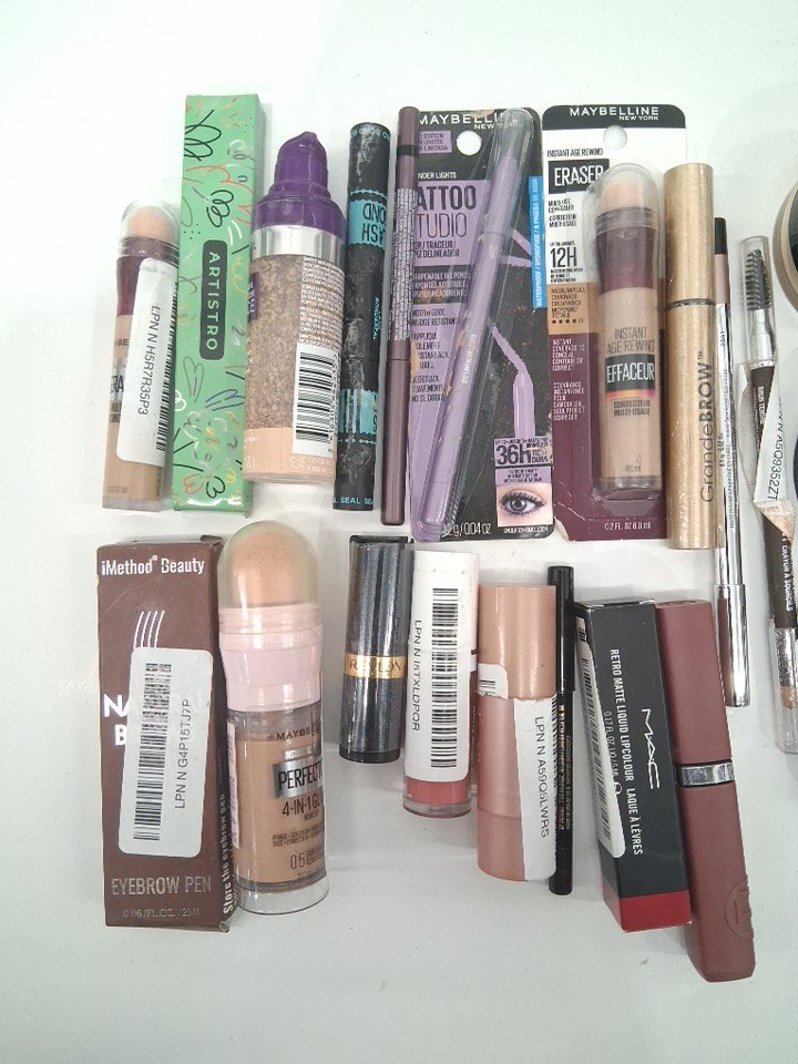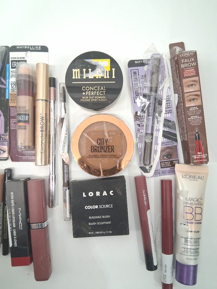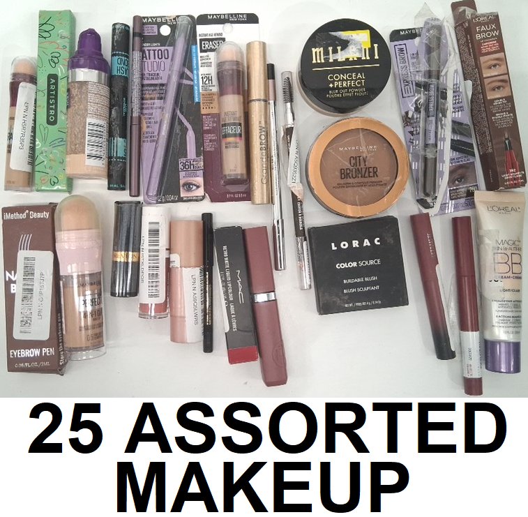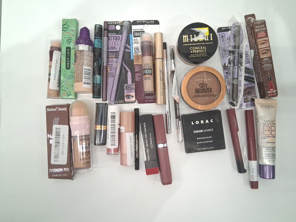 25 ASSORTED makeup products - assorted brands. colours and finishes - powder / eyeliner / foundation / concealer / brow pencils / lipstick
