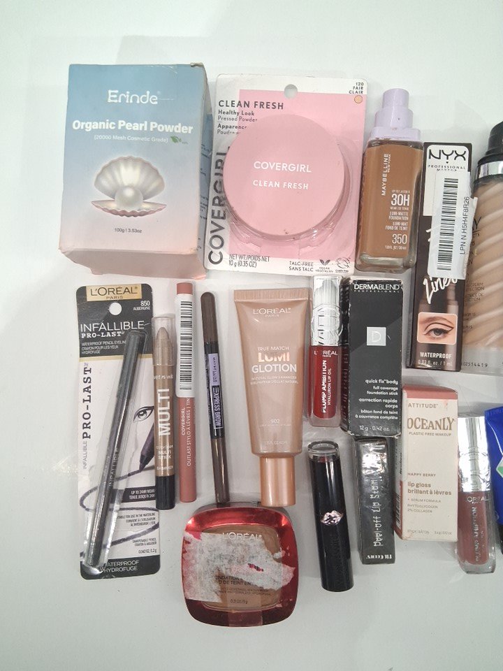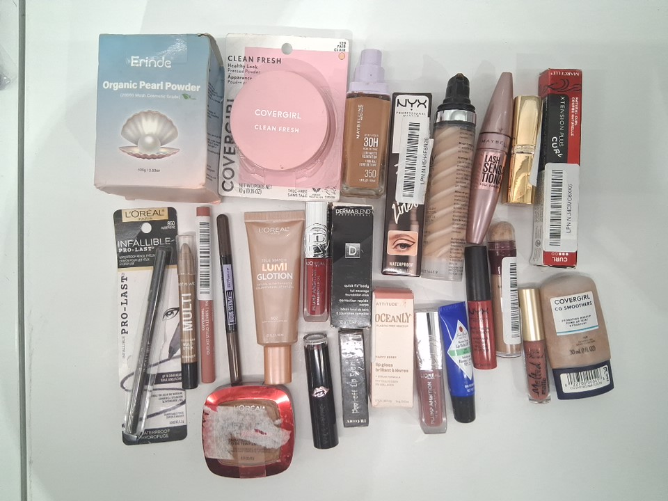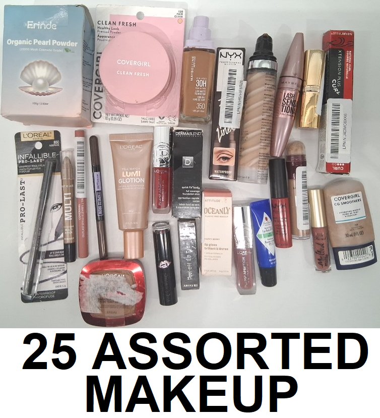 25 ASSORTED makeup products - assorted brands. colours and finishes - powder / eyeliner / foundation / concealer / brow pencils / lipstick
