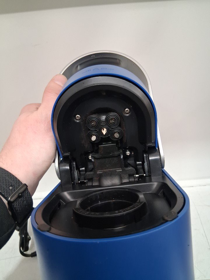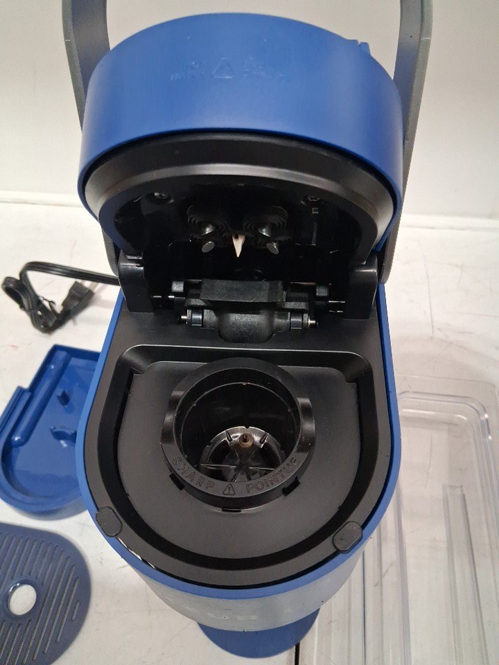 Tested for basic power, working. Signs of light use, water residue/coffee on machine and in water tank. A piece of the plastic housing has snapped off on the back. See photos