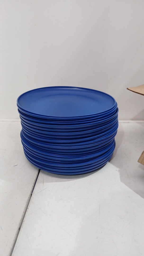 24PK ROOM essentials plastic dinner plate - 10" - blue