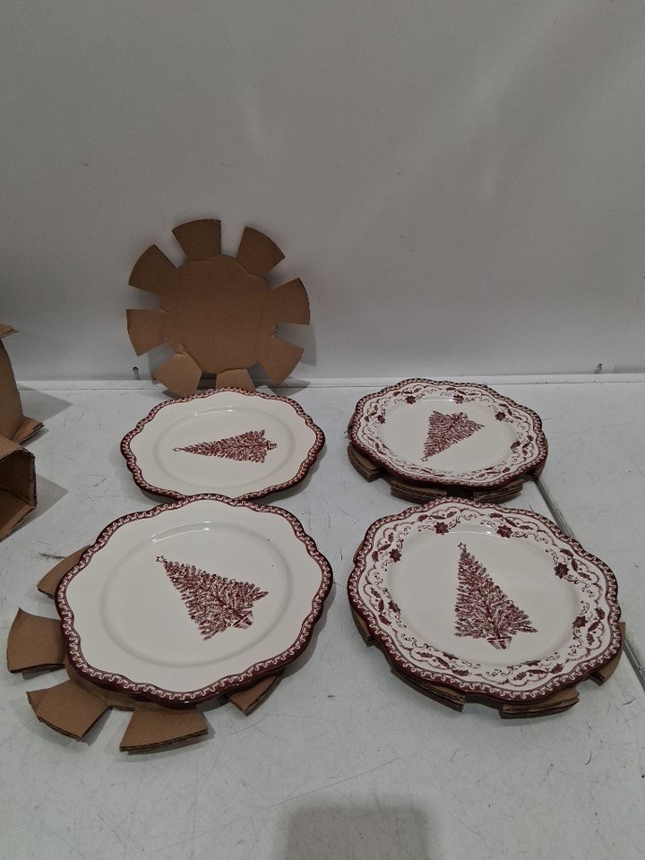 4PK THRESHOLD HOILDAY SALAD PLATES - 8.6" - RED/WHITE