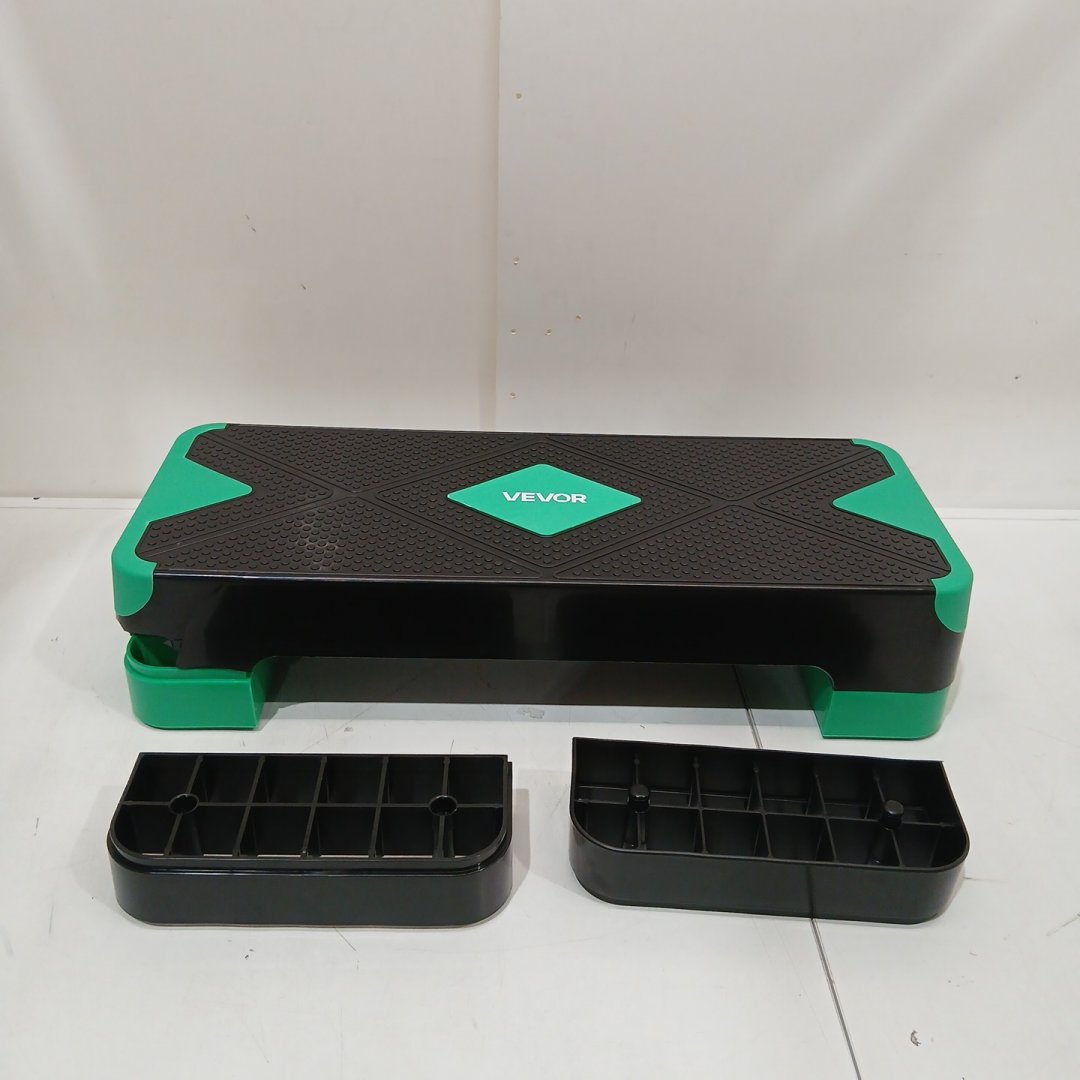 Item has signs of light use, as well as one corner has a bit of damage. Feet still click in and provide stability. May not have the same weight capacity as a brand new product.