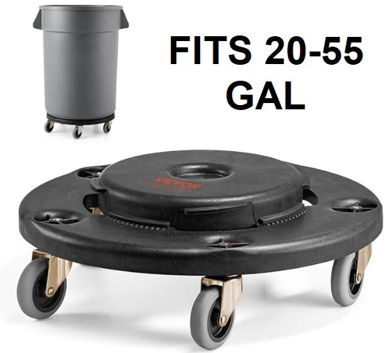 VEVOR Trash Can Dolly - fits 20-55gal trash cans - black