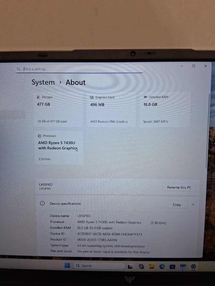 LX15 PRO 15.6" laptop computer - AMD RYZEN 5 7430u, 16gb ram, 512gb ssd - grey (model: lx15PRO)