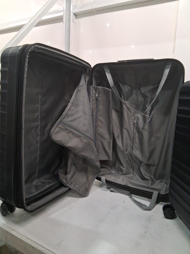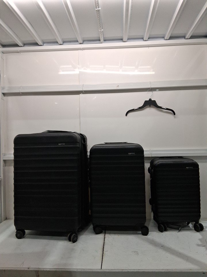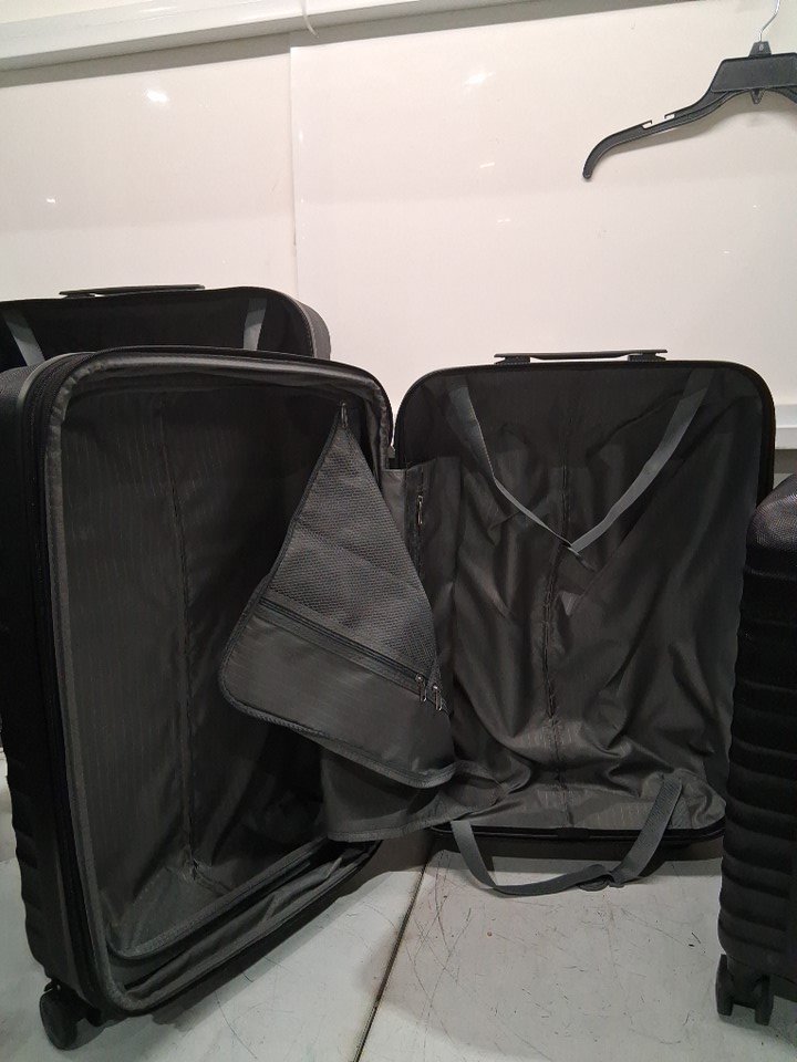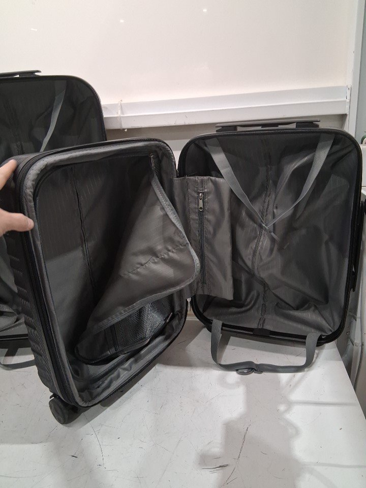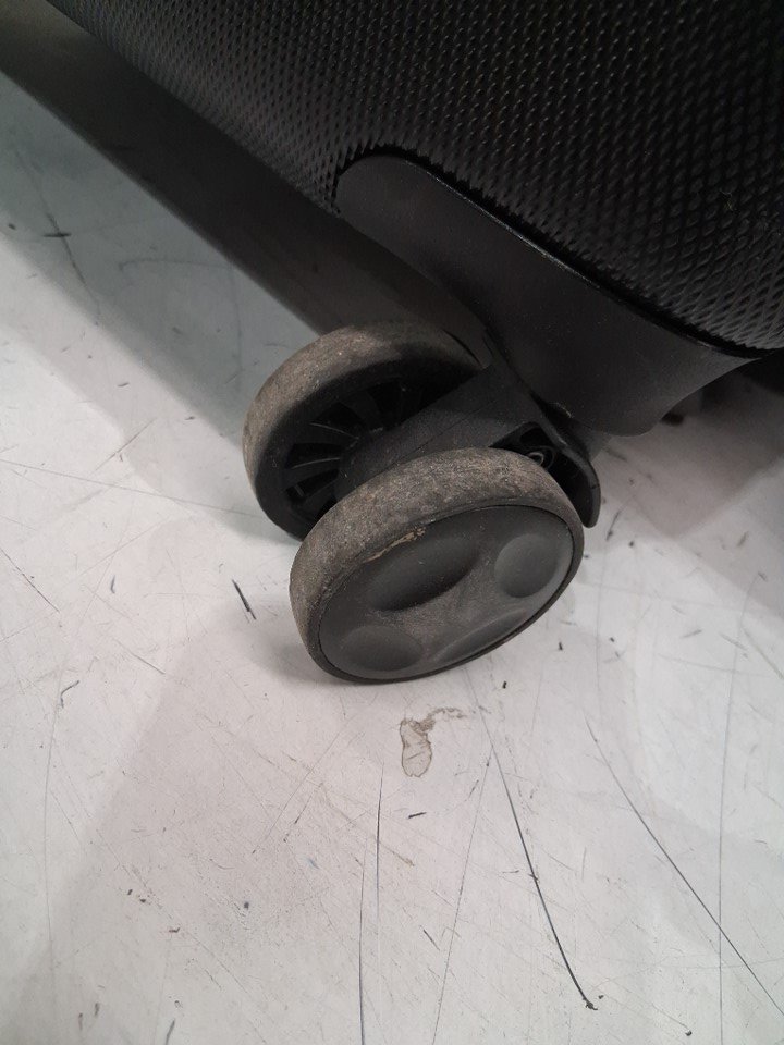 There are scratch marks on the product, and dirt residue is present on the wheels of all the luggage
