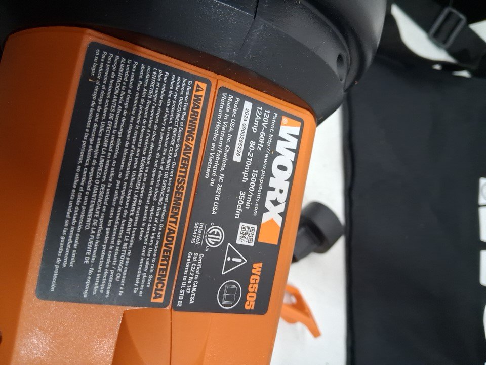 Tested for power, there is some leaves and dirt from use on blower a dent mark, see all photos.