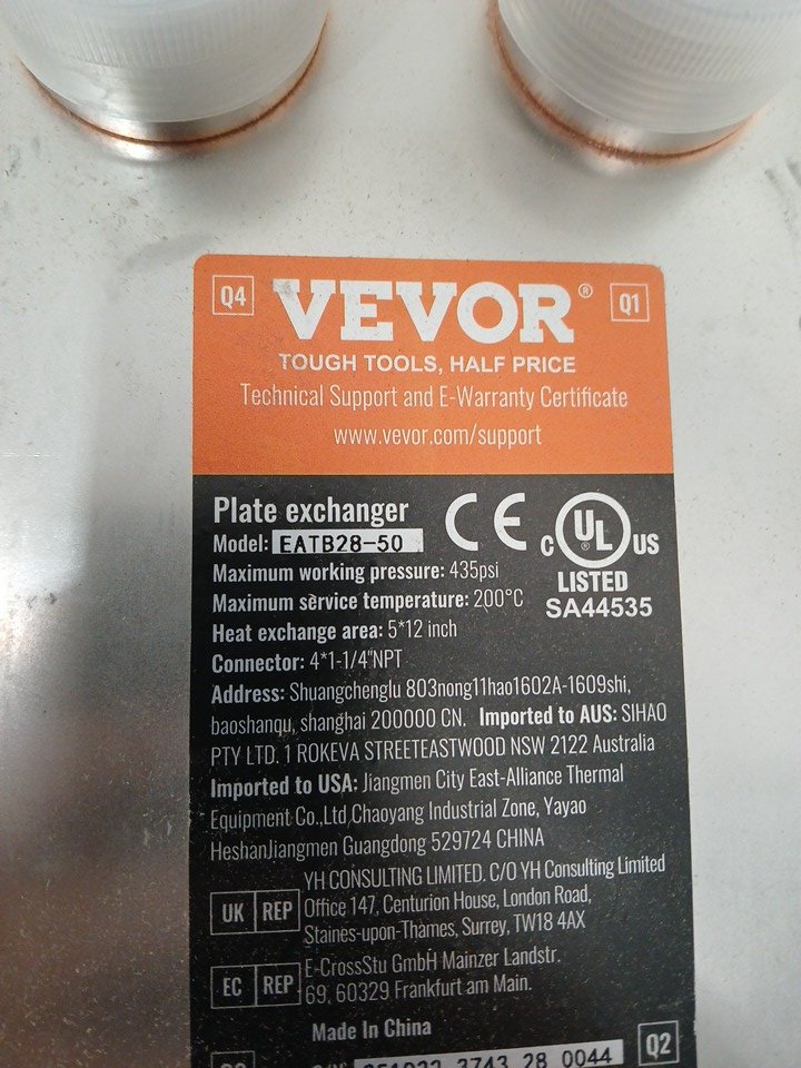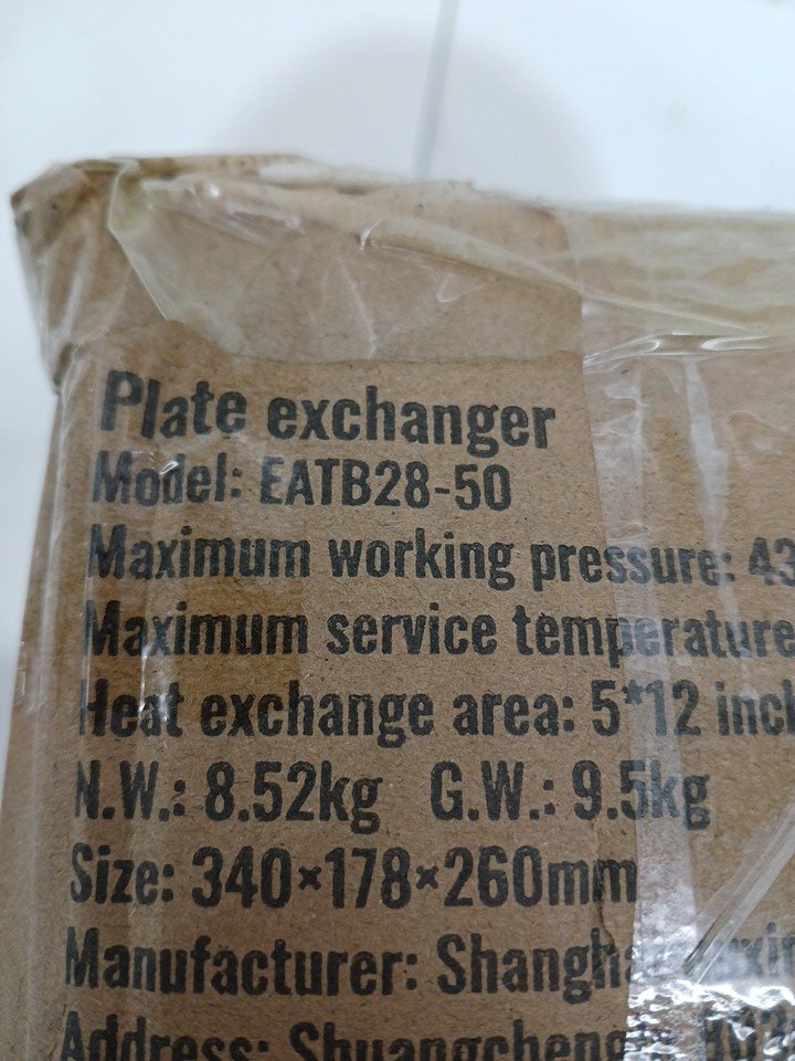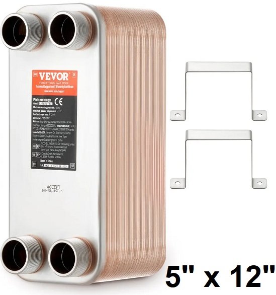 brazed plate heat exchanger - 50 plates - 5" x 12" - copper/stainless steel (model: eatb28-50)